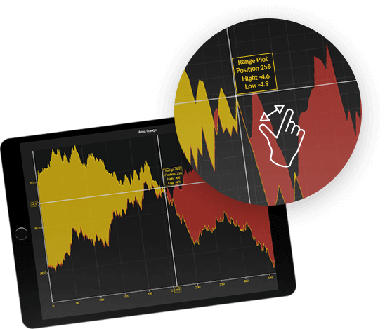 LightningChart® JS 独特的超强渲染能力保证了动画的流畅性,在每张图表显示的数据量上超过了业界水平。产品提供直观的触屏交互功能,可以缩放,平移,移动数据光标等。
